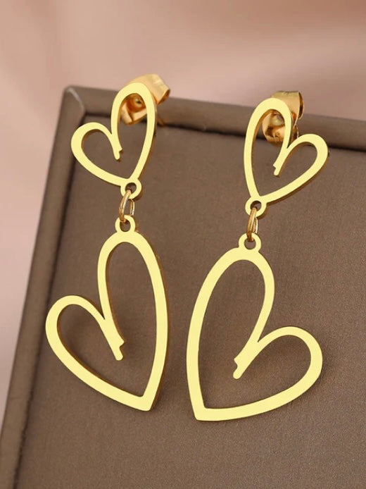 Double heart dangle earrings